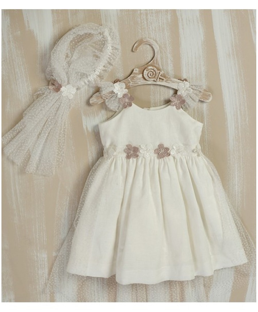 ΒΑΠΤΙΣΤΙΚΟ ΦΟΡΕΜΑΤΑΚΙ ΣΕ OFF WHITE ΑΠΟΧΡΩΣΗ ΜΕ ΣΑΠΙΟ ΜΗΛΟ ΛΕΠΤΟΜΕΡΕΙΕΣ