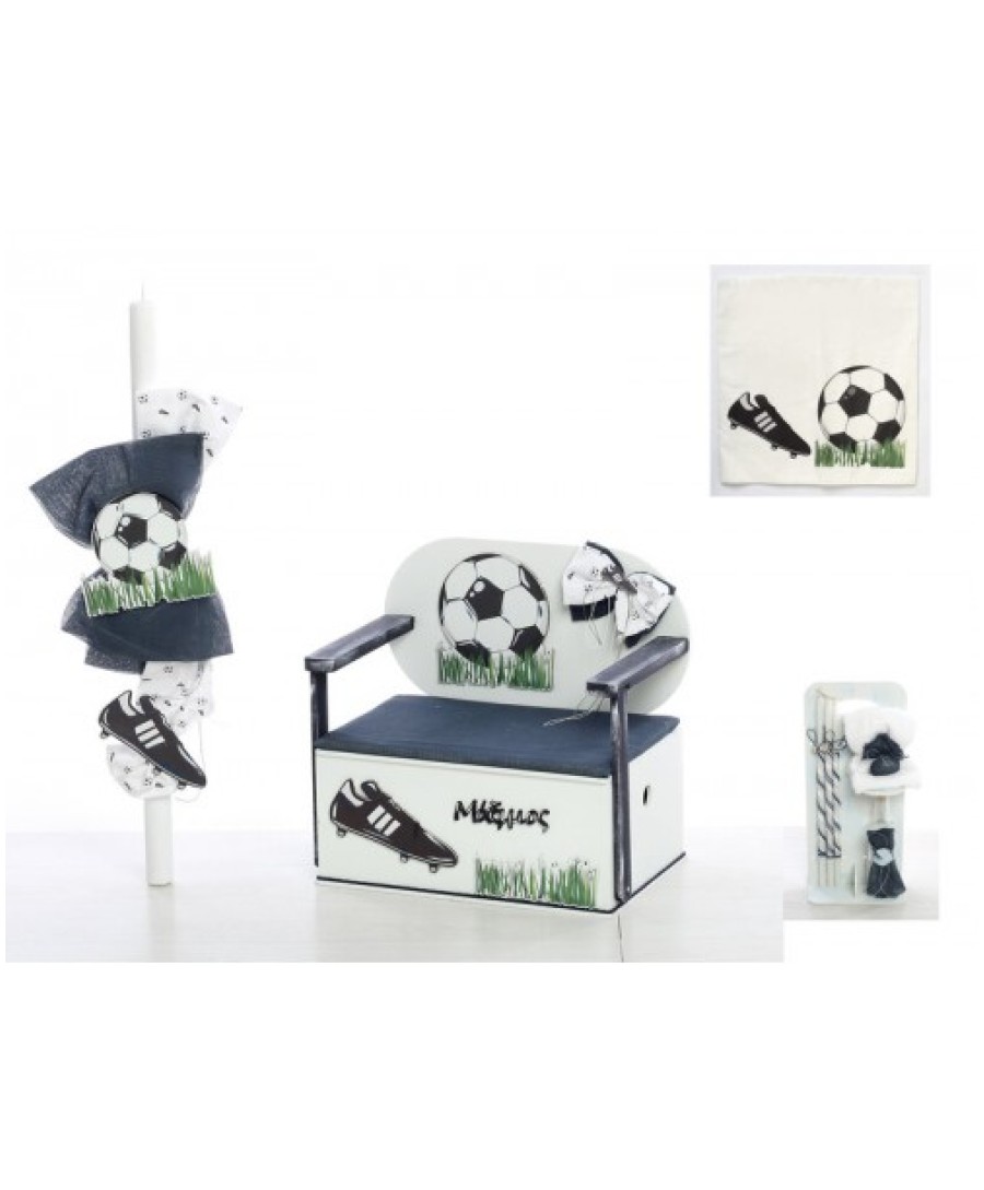 ΧΕΙΡΟΠΟΙΗΤΟ ΣΕΤ ΒΑΠΤΙΣΗΣ ΞΥΛΙΝΟ ΚΟΥΤΙ-ΘΡΑΝΙΟ ΜΕ ΘΕΜΑ ΠΟΔΟΣΦΑΙΡΟ